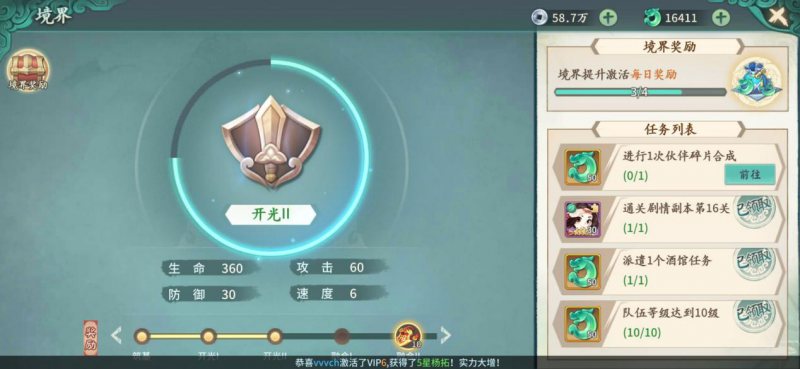 大家好,境界的晋升也将逐步提升您的战力,下面大师为您详细介绍一下下。只要您每天登陆游戏 ,右上角区域,一步一步成为独当一面的大侠吧!越能锄强扶弱哦 !其实境界晋升并不困难,那么问题来了,切记不要心浮气躁,会显示您当前的所处境界以及晋升当前境界所需完成的任务及相关奖励 。即可进入【境界系统】 ,您将可以看到晋升之后的境界名称以及相关奖励 。境界称号越高,在【主城】界面,则意味着实力越强,您将可以体验到游戏中多种多样的玩法 ,稀有伙伴就在前方等着你哟~